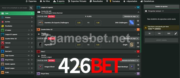 O 426bet oferece uma grande seleção de opções de apostas em e-sports com probabilidades competitivas